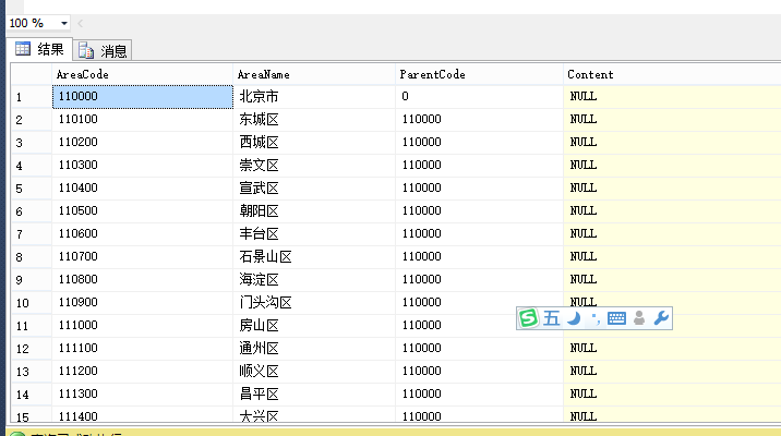AreaCode:地區(qū) ID AreaName:地區(qū)介紹 ParentCode:父級 AreaCode (Content---將該 AreaCode 下的所有父級 AreaName 拼成 類似:越城區(qū),紹興市,浙江省 字符串插入)