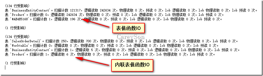 從IO來看,很明顯是選擇了次優(yōu)的執(zhí)行計劃,BusinessEntityContact選擇了121317次查找,而不是一次掃描。而內(nèi)聯(lián)表函數(shù)能夠正確知道掃描一次的成本遠低于一次查找。