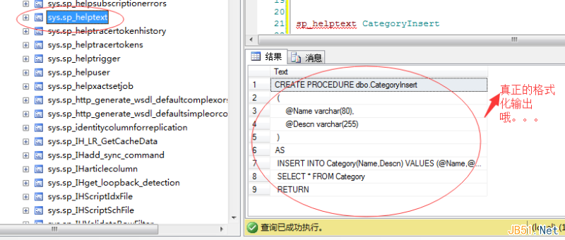 A3:確實如你所說,格式化輸出的話,系統View只能幫你到這了,不過天無絕人之路,你可以使用系統存儲過程,里面有一個神奇的sp_helptext,可以祝你實現夢想,不用謝。