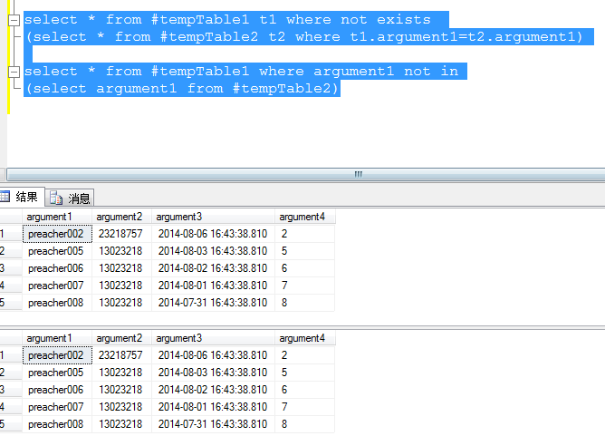 insert into #tempTable2(argument1,argument2,argument3,argument4)