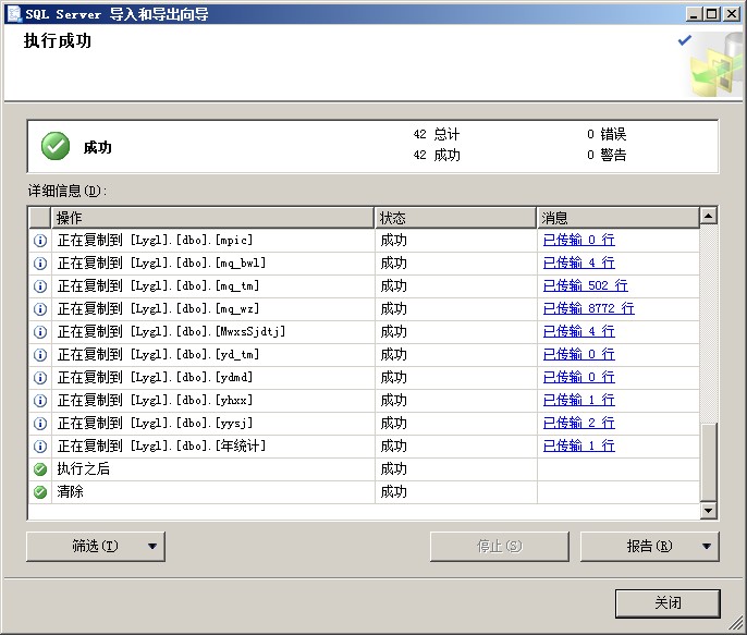 8、點擊完成按鈕開始遷移數(shù)據(jù)庫到SQLSERVER