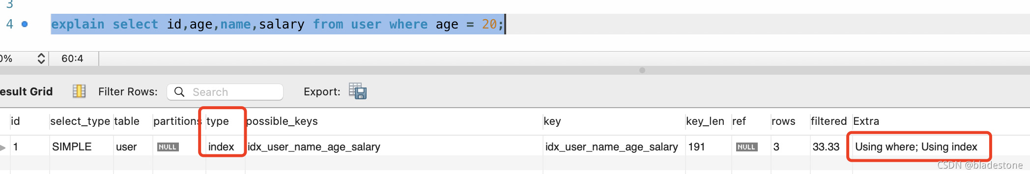 增加表的聯合索引:CREATE INDEX idx_user_name_age_salary ON mydb.user (name, age, salary);