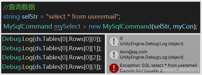 到此這篇關于Unity連接MySQL時讀取表格的方式的文章就介紹到這了,更多相關Unity連接MySQL讀取表格內容請搜索腳本之家以前的文章或繼續瀏覽下面的相關文章希望大家以后多多支持腳本之家!