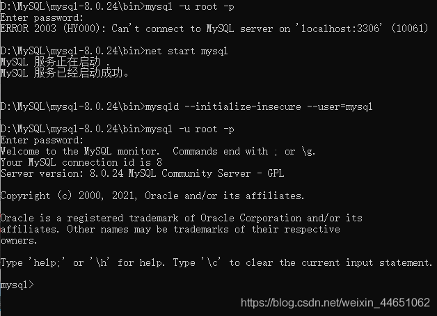 您可能感興趣的文章:- mysql 8.0.24版本安裝配置方法圖文教程