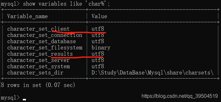 原因:cmd命令行默認(rèn)使用gbk編碼,而set character_set_results卻為utf8。