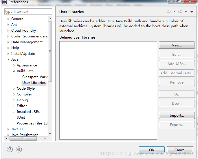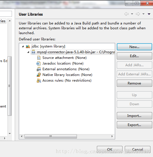 (1)eclipse中選擇Window-preferences-java-Build Path-User Libraries