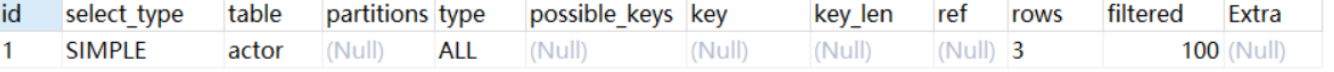 explain 時可能出現 possible_keys 有列,而 key 顯示 NULL 的情況,這種情況是因為表中數據不多,mysql認為索引 對此查詢幫助不大,選擇了全表查詢。