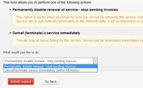 我們有一些網友,包括我自己在開始購買搬瓦工VPS之后,擔心會自動續費,所以會OFF掉賬單提醒選項,如果我們還希望續費,那可以在賬單到期前8天,通過提交TICKET工單,申請需要激活賬單我們需要續費的事情,官方會給我們重新開啟賬單給我們續費的。