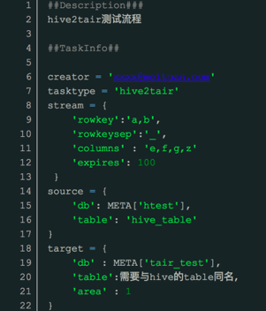 基于以上原因,我們開發了Spark版的hive2Tair流程,并將其封裝成一個標準的ETL模板,其格式和內容如下所示: