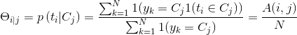 好啦,一大堆無聊公式的折磨后,我們終于要見到勝利的曙光:模型參數預估。一般的方法有最大似然估計、最大后驗概率估計等。本文使用的是多項伯努利模型,我們直接給出多項伯努利模型參數估計結論: