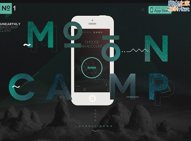 4、Moon Camp徹底把文字和圖片混合在一起。這種做法成功與否不僅取決于整體頁面的布局,色彩的搭配也是個很關鍵的因素。網頁色調屬于昏暗系,所以設計師選擇了星空色作為字體的顏色,與網站風格吻合,文字的不規則排列也讓網站多了一份神秘感。