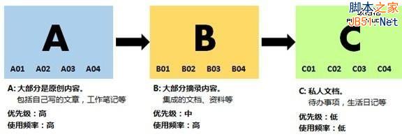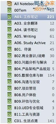 建立了你的主題關(guān)鍵詞后,evernote的筆記本也可以建立相應(yīng)的名稱(chēng),以便于你歸類(lèi)不同的資料、文檔、圖片等。Evernote會(huì)自動(dòng)按照筆記本的數(shù)字及字母順序排序,所以在數(shù)字前加字母ABC就幫助我形成了兩級(jí)的排序。同時(shí),字母ABC又可區(qū)分3個(gè)大的種類(lèi)。