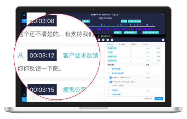 例如,很多企業(yè)的服務(wù)規(guī)范,要求業(yè)務(wù)人員遇到“客戶要求反饋”的場景時,及時作出“安撫解釋”。如果沒有出現(xiàn)“安撫解釋”的語義點(diǎn),即判定該客服或銷售人員未按流程提供服務(wù),須減去一定的分值。