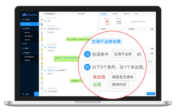 例如,某個專業(yè)的、提供居住服務(wù)的企業(yè),要求當(dāng)客戶提到“空調(diào)不運(yùn)轉(zhuǎn)”的場景時,在線客服人員需要向客戶確認(rèn)“插座是否通電”、“物業(yè)地址”和“維修時間”,如果沒有提到其中任何一個,都會被判定為不合格。