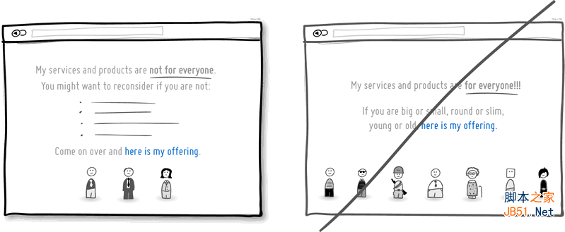 你的產品是面向所有人的還是精確的鎖定某類人群?直言產品和服務的目標用戶類型,這也是提升轉化率的有效方式之一。通過對用戶資質的描述,你可以更精確的與你的目標用戶建立關聯,而且會帶來一種“排他”的情感暗示。當然,這種策略也有一定的風險,你可能會將潛在用戶的范圍限定的過小。但是我們必須相信,透明可以帶來信任。