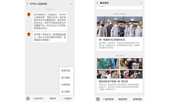 ▲ 畢節市人民政府和嘉定信訪公眾號接入“i啥啥”