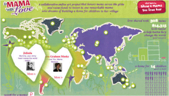 www.tomamawithlove.org網站表達其目標的形式非常吸引我。在右半部分頂端我們可以看到籌集50,000美元的目標,目前的現狀(14,280美元),以及授予榮譽的母親共307位。