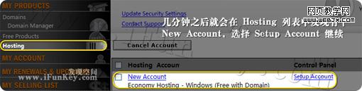 一段短暫的等待之后,如下圖,就會(huì)在自己的 Hosting 列表中發(fā)現(xiàn)有個(gè) New Account ,點(diǎn)擊后面的那個(gè) Setup Account 進(jìn)行空間的詳細(xì)設(shè)置。