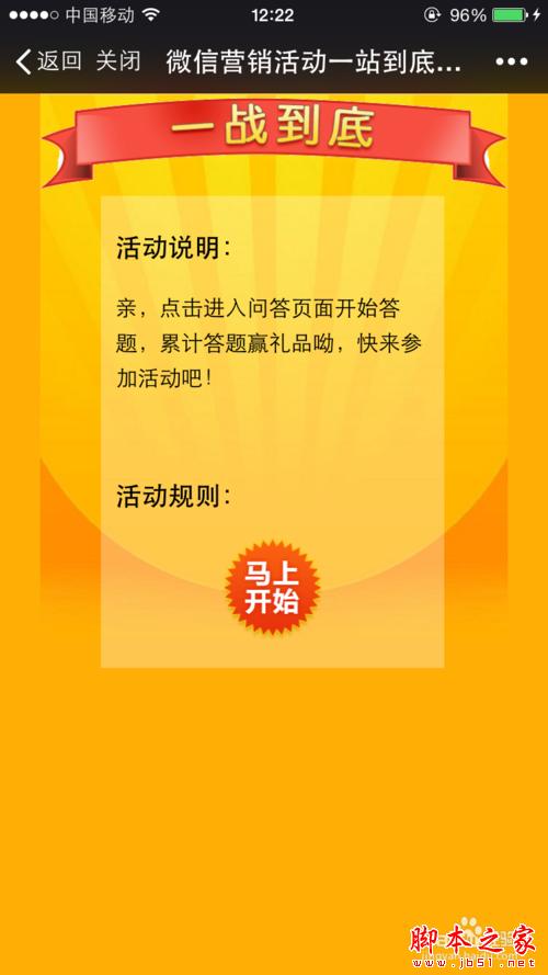 活動(dòng)做好后,用手機(jī)在公眾平臺(tái)回復(fù)你設(shè)置的活動(dòng)關(guān)鍵詞即可看到效果