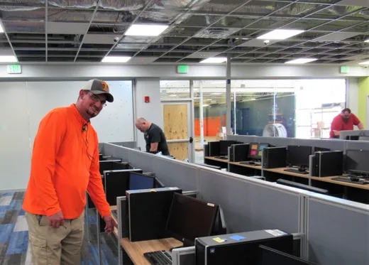 工作人員在里面為Farragut的Outlet Drive的Sitel呼叫中心建立基礎(chǔ)設(shè)施。
