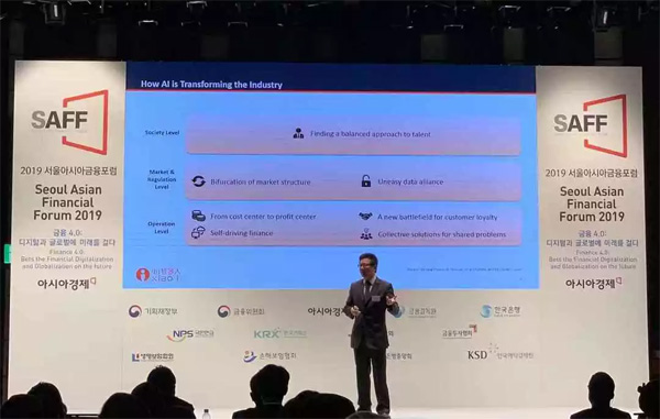 4月17日,小i機(jī)器CFO鐘創(chuàng)新受邀出席由AsianEconomy主辦,在韓國首爾舉行的第17屆首爾亞洲金融論壇。本屆大會以“金融4.0—擁抱金融數(shù)字化及全球化”為主題,鐘創(chuàng)新在大會現(xiàn)場分享了關(guān)于“AI如何重塑金融及銀行業(yè)”的看法。