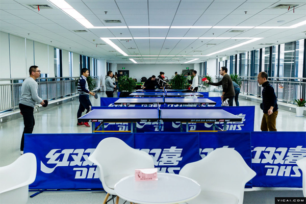 圖為該在線旅游平臺呼叫中心員工休息時間打乒乓球。