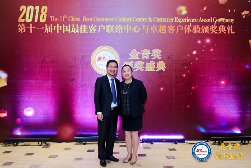 Teleperforamnce副總裁高穎女士出席金音獎頒獎典禮,左為51callcenter顏曉濱主席