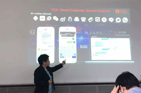 小i機器人高級副總裁小i智慧學堂執行校長——許弋亞發表了“AI Drive Innovation in Customer Service”主題演講