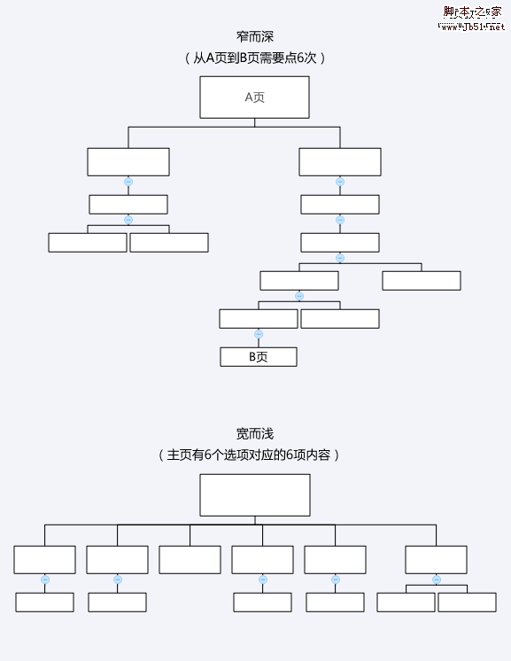 其實“深廣度”本身并不是一個單一的概念。在網站的信息架構中,有一種組織結構叫做樹形結構:網站首頁視為鏈接層級中第一級,與其有從屬關系的頁面視為鏈接層級中的第二級,一般稱其為二級頁面。通過二級頁面又可以繼續得到第三級頁面,依此類推可以得到一個完整的樹形鏈接結構。這樣一個完整的鏈接結構,我們稱它為樹形結構。