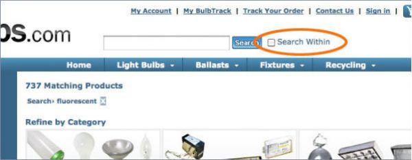 bulbs.com里的局部搜索是以勾選框的方式出現