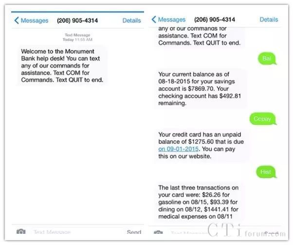 這個示例模擬了基于短信服務的銀行業務體系。在這個案例中,用戶要對其銀行賬戶進行一些基本的操作。