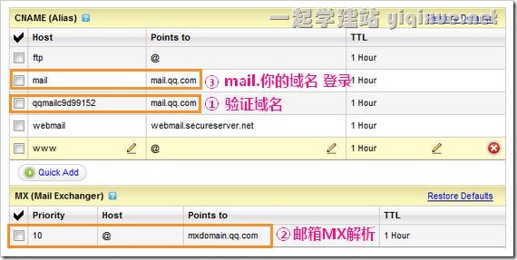 注意:此時可能由于你的MX解析還沒有生效,所以還不能設置你的域名郵箱,那就等待吧,一般需要2-24小時,當然了,Godaddy域名生效還是比較快的,就幾分鐘。