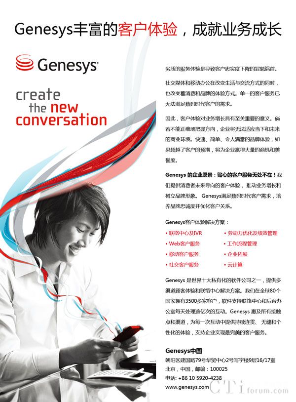Genesys將參展4月16-17日在中國北京舉行的“2015中國呼叫中心及企業通信大會”。(http://www.ctiforum.com/expo/2015/ccec2015spring/index.htm>)。