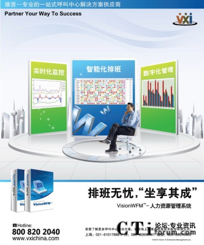 VisionWFM智能排班管理系統由維音為客服中心提高運營管理水平而研發,將標準化的呼叫中心人力資源管理流程固化在了軟件的功能應用中,加以人性化的管理理念設計,體現了管理的精確化、方便性。 VisionWFM基于維音自已的平臺開發,從人力資源安排、數字化排班、區域化排座、現場管理、遵時跟蹤管理、管理提高等多角度提升企業的數字化管理;利用先進的算法和圖形化操作界面實現;具有維護簡單、操作便捷、擴展性強、準確性高等特點。 在使用VisionWFM后,我們的客戶如是說: “預測很便捷,在使用了VisionWFM之后,話務量預測和人員預測的時間較人工計算節約了三分之二;排班結果在保證KPI達成的基礎上,員工的利用率也得到了明顯的提升(10%左右)。我們將繼續使用VisionWFM,維音給予了我們充分的信心?!?/p>