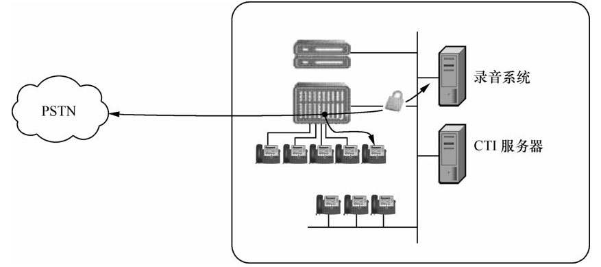 CTI服務(wù)器獲得,如主被叫電話號(hào)碼、振鈴時(shí)長(zhǎng)、等待時(shí)長(zhǎng)、保持時(shí)間、業(yè)務(wù)類型、坐席號(hào)、呼叫號(hào)等。這種方式對(duì)于PBX設(shè)備的要求低,擴(kuò)展性好,但需要數(shù)據(jù)交換機(jī)的支持,同時(shí)只適合給IP電話錄音,不適合于其他類型的電話。