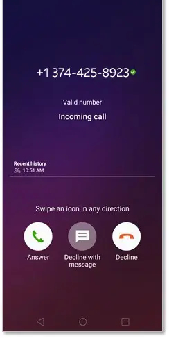 A級認證的電話最可信,也最不可能是不良呼叫,雖然接收方手機屏幕上顯示的內(nèi)容會因運營商的不同而略有不同,但最終,運營商會盡量讓收到完整認證的電話看起來盡可能可信;這可能包括在設(shè)備屏幕上為來電添加復選標記或單詞verified(或兩者兼有),并實際顯示來電的電話號碼。請看一個驗證呼叫的示例…(圖片來源:ATT)。