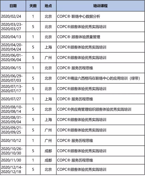 2019年COPC中國區公開課培訓計劃