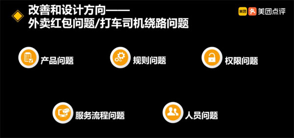 最后,再通過例子介紹下,服務推動體驗改善的幾個維度,類似制造業會從人、機、料、法、環幾個維度進行問題原因親和和聚類;服務業場景的幾個為度是:產品、規則和權限、機制、流程、人員。以外賣紅包問題為例,第一類是產品的優化,客戶反饋說換個城市紅包就不能使用了,這就是一個產品問題,我們會推動業務去改進優化產品,讓這個問題本身從源頭上沒有客訴;第二類是權限和規則的優化,對于紅包換綁手機后不能使用的問題,從產品源頭沒有得到解決時,客服可以把原來手機號里面的紅包凍結,然后在新的手機號里補一個紅包。也就是賦予客服權限,來把問題解決;第三類是機制的優化。我們意識到有時候業務在做產品設計,或者做很多活動的時候,沒有一個和服務之間的互通機制。所以當出現問題的時候,服務部可能會一開始不知道怎么處理。后來我們推進了一些機制的建立,所有的活動類的問題或者是有重大影響的問題都會和服務不有提前溝通,提前做一些流程和話術準備,甚至服務同學會參與到設計過程中,從客戶視角給一些建議和規范。