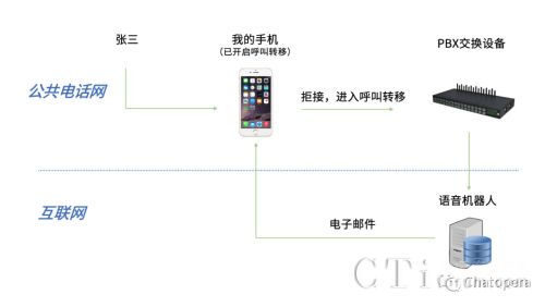 假如張三給我來(lái)電話,我可以將這通電話用呼叫轉(zhuǎn)移功能轉(zhuǎn)接到另一個(gè)電話號(hào)碼上。