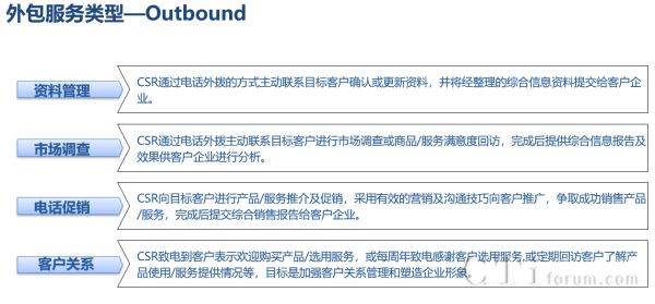 外包呼叫中心從客戶服務到市場營銷,其業務范圍幾乎包含了所有呼叫中心所能承載的業務類型。