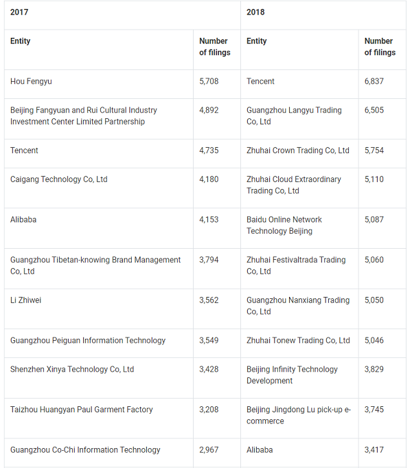國內申請人占韓國人登記的大部分,并且可能是未來幾年經濟增長的最大貢獻者。毫不奇怪,它們在前25名公司申報人名單中也占主導地位(請參見表6)。LG Corporation的子公司LG Household Health Care,化妝品公司Amorepacific和在線服務提供商Coupang是2018年的主要申請人。