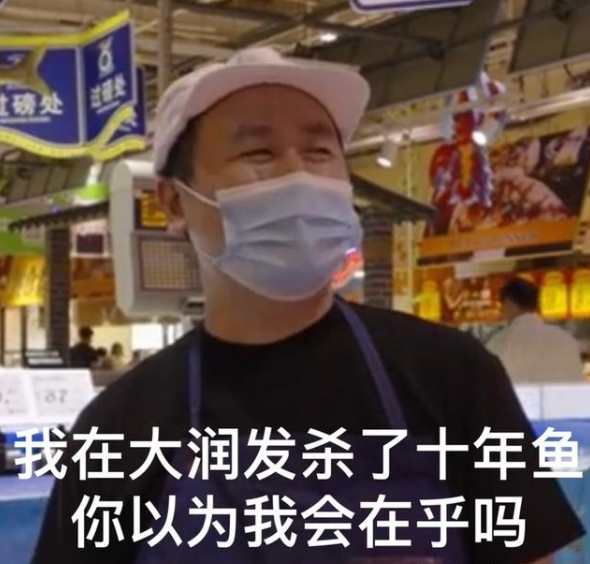 熱衷于上網(wǎng)沖浪的人,對(duì)這個(gè)梗一定不會(huì)陌生,這句網(wǎng)絡(luò)流行語(yǔ)最初起源于一段大潤(rùn)發(fā)超市殺魚的視頻,常常被網(wǎng)友用來(lái)形容自己毫不在意的姿態(tài),有點(diǎn)類似于英文“who cares”的意味。