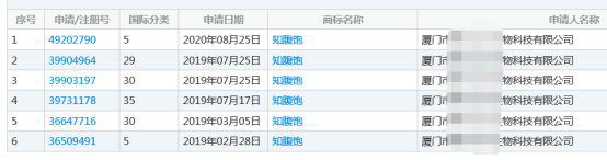據查詢,上述申請知腹飽商標的公司,名下多枚商標都申請出了諧音梗